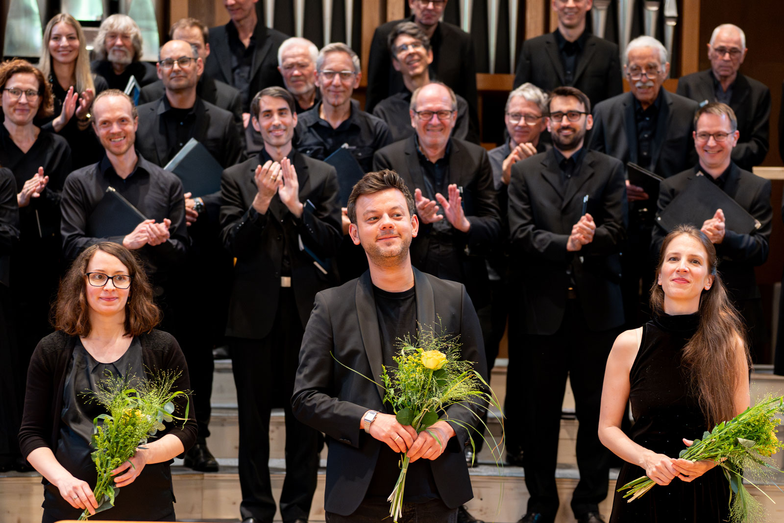 Mezzosopranistin Kathrin Schweizer begegnete der Herausforderung der Sopran- und Altpartie bei Britten „... mit schlanker, ungemein flexibler und mühelos geführter Stimme ...“ Ein Sonderlob gab es für die Tenöre „... die dem eigentlich ebenfalls als Solo geschriebenen Lobpreis der Blumen ("For the tl.owers are great blessings") im Pianissimo Ausdruck verliehen“.
